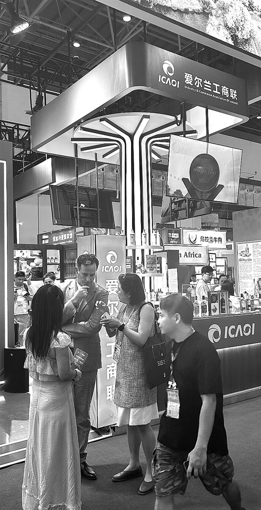 图(3):中外嘉宾在第六届消博会上照管洽谈。光明日报记者吴娜摄/光明图片