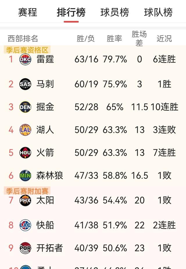 西部老例赛的悬念所剩无几,各支球队的排行与对阵基本笃定,季后赛的强烈对抗行将拉开帷幕。