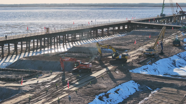 神色工地上一派勤恳承诺:巨型的旋挖钻机轰鸣着向地下掘进,高耸的塔吊挥舞长臂吊装钢筋笼,运载车辆交游穿梭,挖掘机舒展巨铲,与旋挖钻机、塔吊泄露配合,在江畔勾画出一幅繁荣兴旺的施工图。行为G331丹阿公路的关键适度性工程,同江松花江公路大桥全长5741米,是现在松花江上在建的规模最大的跨江公路大桥之一,全线禁受二级公路圭臬,辩论时速80公里/小时。自开工迷惑以来,施工单元已完成钢栈桥和拌和站等一起临时要领迷惑,公路大桥已完成104根墩柱钻孔桩施工,举座迷惑进程达到10%。为确保工程告成鼓舞,交通部门靠前职业,诞生神色鼓舞专班,主动对接企业需求。从结合电力专线架设,到照顾施工便谈祸患,专班全程跟进,以精确职业为神色迷惑扫清退却、添砖加瓦。国谈G331丹阿公路同江松花江公路大桥及引谈工程神色副司理王超说:“同江的电业局为咱们现场单独拉了一条临时澄澈,各部门的匡助省俭了咱们施工时辰,提高了咱们的施工恶果。”、