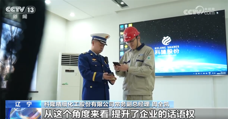 辽宁科隆精细化工股份有限公司常务副总经理 周全凯:原来检查由于我们临时得到通知,安全员就要临时抽调,这样对我们安全生产造成很不利的影响。而这次他扫码进企之后,我们提前得到通知,我们可以提前安排相关人员准备好相关资料,这样对车间的安全生产运行是非常有好处的。