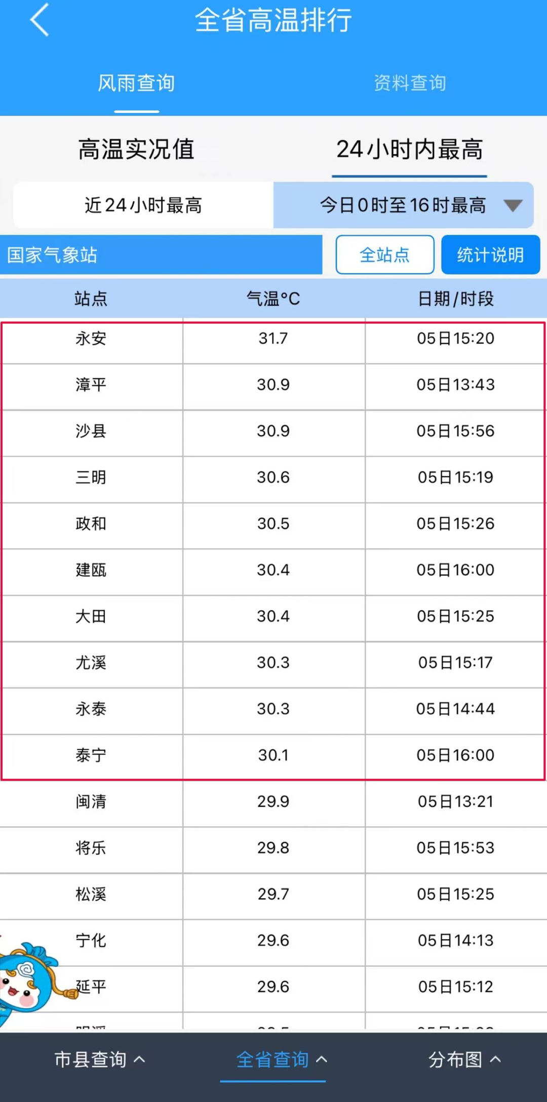 其中,永安最高温31.7℃