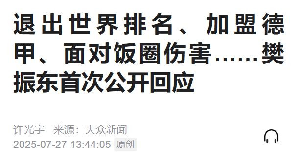 内行新闻:退出世界名次、加盟德甲、濒临饭圈伤害……樊振东初度公开回话