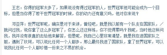 主抓东谈主王志曾在采访中问过邓亚萍一个问题: