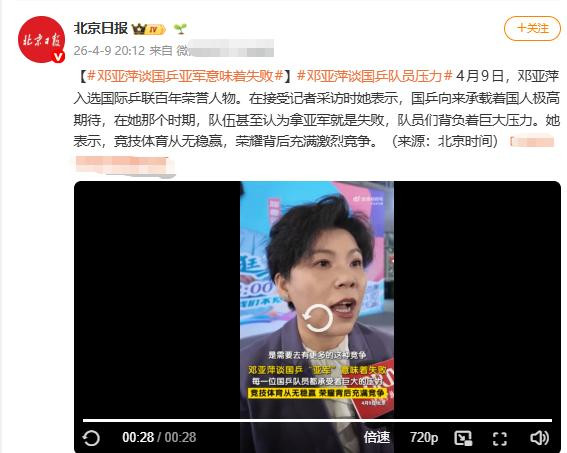 那时邓亚萍的回答,朴实却又充满力量: