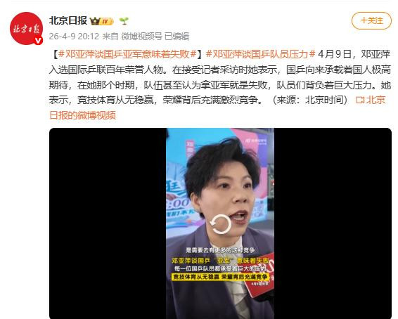 “关于咱们乒乓球队来讲,像咱们阿谁期间频频讲,拿到亚军,就意味着失败。”
