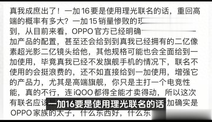 一加自被OPPO全面整合后,已冉冉脱离往常“性能前锋”的单一标签,向万能旗舰目的转型。2025年发布的一加15天然在中枢肠能上发达顽强,但在影像系统方面仍显保守,未能有用撬动高端用户群体,导致销量未达预期。这一恶果促使OPPO高层从头评估家具策略,将更多资源歪斜至一加品牌,尤其是影像与想象层面。2026年第一季度,一加已阐发将搭载二亿像素超光影主摄,并引入全新AI影像引擎,这与理光在色调规复、动态范围限度方面的上风高度契合。因此,将理光联名改动至一加16系列,既是对一加家具力的补强,亦然对OPPO集团里面资源优化确立的体现。