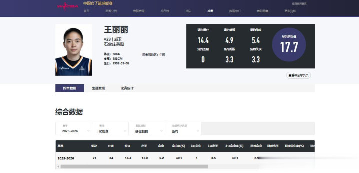 现今31岁,身高1米75,本赛季遵守于新疆女篮,旧例赛场均可砍17.4分,送出8.7次助攻,三分射中率可保握在38.3%,是原土得分王,亦然定约助攻王。