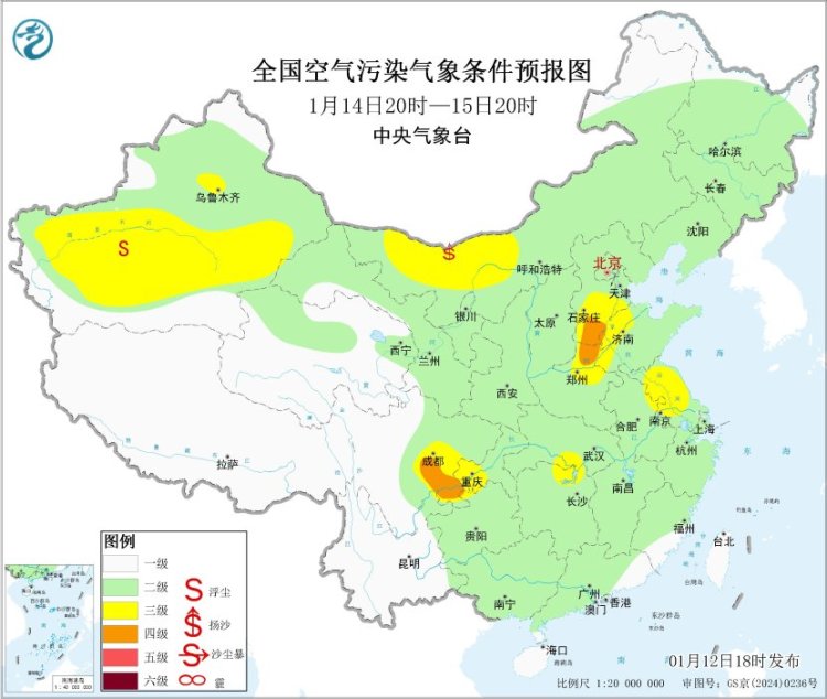 13日至15日,华北中南部、黄淮西部等地的部分地区大气扩散条件略转差,部分地区有轻霾天气,局地有中度霾。此外,未来一周,新疆天山北坡、四川盆地等地的部分地区大气扩散条件较差,有轻至中度霾天气,局地有重度霾。