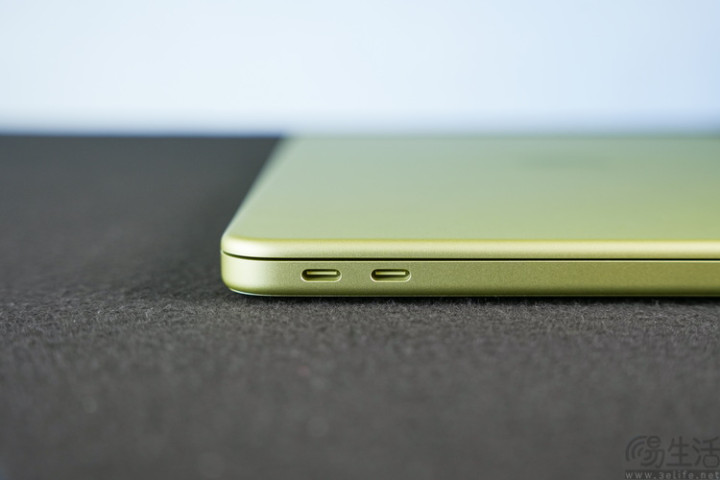 与此同期,MacBook Neo统共提供了三个I/O接口,别离是位于机身左上角的USB3 Type-C(10Gbps、维持DP1.4视频输出),其下方的一颗USB2 Type-C,以及一个3.5mm耳机接口。