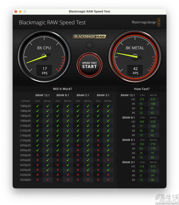 至于响应视频软解码才略的BlackMagic RAW Speed测试,可以看到MacBook Neo使用CPU软解时,堪堪能搞定4K 50P-60P的RAW阵势视频。不外它的GPU靠Metal API加成,在这个测试里发达要比CPU好得多。换句话说,在确凿的达芬奇视频剪辑场景只消开启GPU加快,那么MacBook Neo致使能解码搞定部分8K片断的,这就依然相称“够用”了。