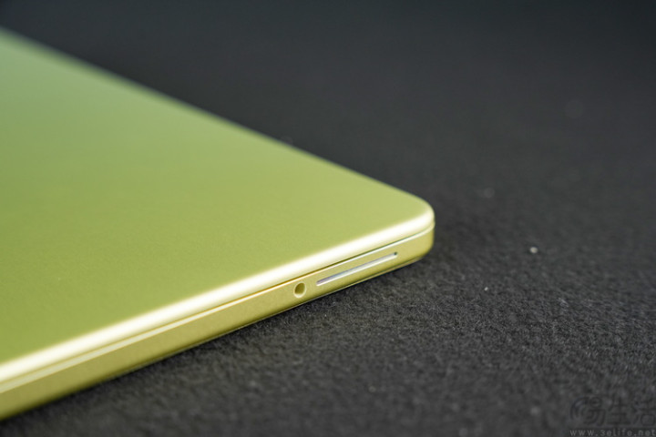 在耳机口的驾御,便是MacBook Neo最具辨识度的特征之一,侧置式的扬声器开孔。