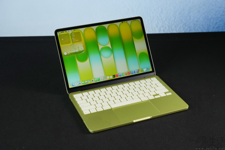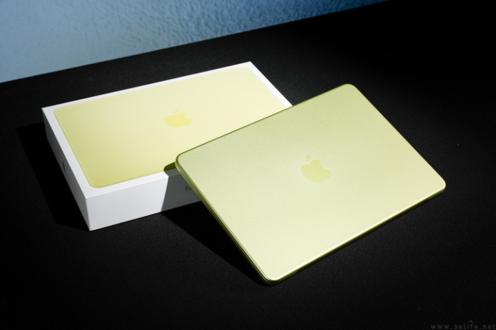 这次咱们拿到的是8GB+256GB版块、柑橘黄配色的MacBook Neo。天然官方将这个配色成为“柑橘黄”,但它看起来其实是一种介于黄色和绿色之间的明后,与其说像“柑橘”,不如说更像水彩笔里的荧光黄色。