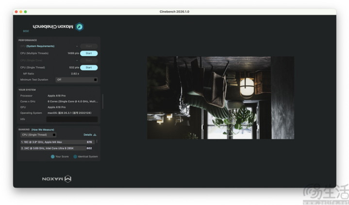 在CineBench 2026中,MacBook Neo的单核532分,高于骁龙X Elite的“X1E80”版块。但多核如实有点亏空,仅1499的多核收获和2.82倍的多核倍率,讲解其能效核与性能核之间互异较大。