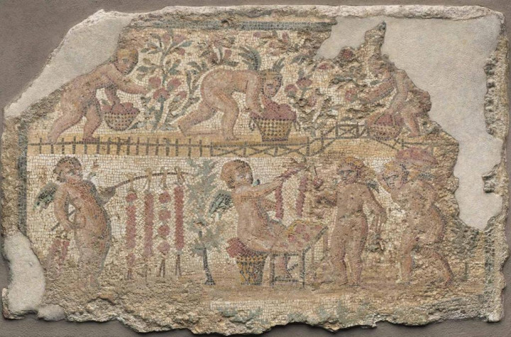 佚名,《花圃中丘比特采摘玫瑰》,嵌入画,罗马,2世纪晚期至3世纪中期