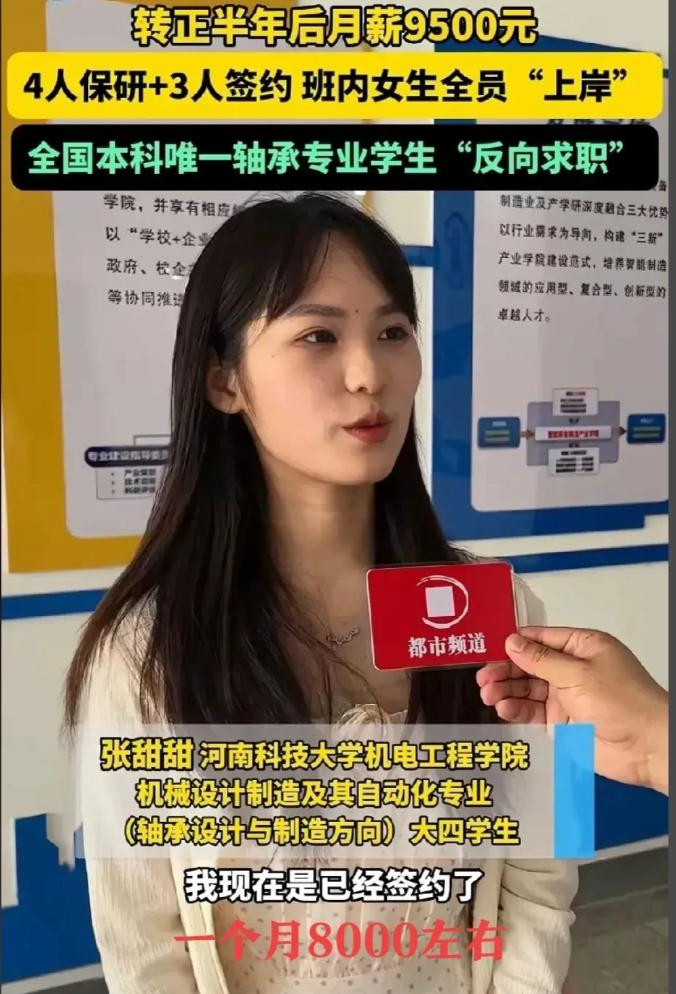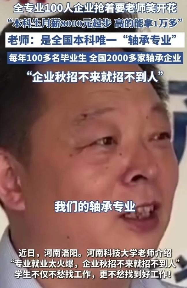我国轴承企业相配多,仅学校地方地洛阳,就和哈尔滨、瓦房店并称中国三大轴承厂,联系企业快要200家,但这个专科每年毕业生只须一百东说念主傍边,供需严重失衡,导致毕业生年年供不应求,各大企业都会径直到学校抢东说念主,本科生毕业月薪就能达到8000起步,况兼责任强健,堪比铁饭碗。