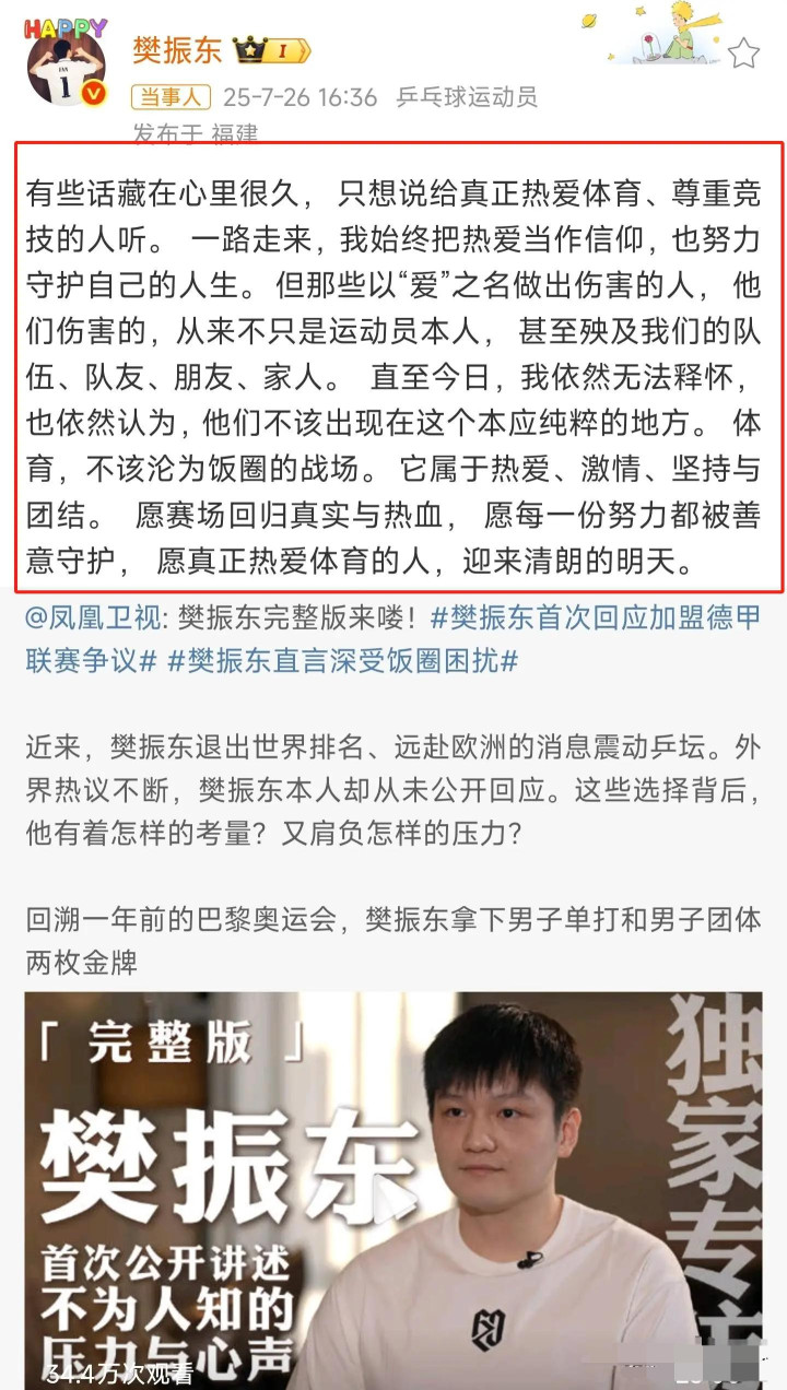 说到底,樊振东的故事,压根不是什么宫斗剧;