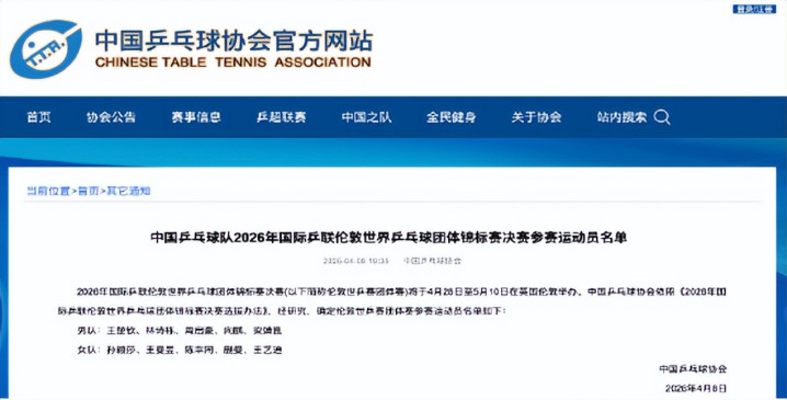 4月8日,中国乒协认真放出伦敦世乒赛团体赛名单。