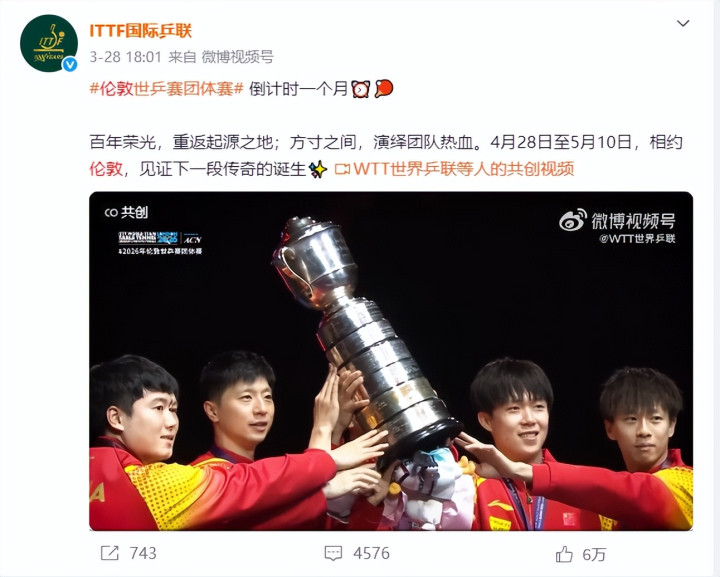 就在一个月前,国际乒联发了伦敦世乒赛百年记挂宣传片。